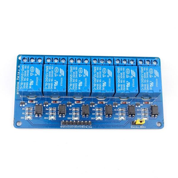 This 6 Road/Channel Relay Module (with light coupling) 12V module meets the safety standard as control areas and load area have the isolation groove. Optical coupling isolation module.