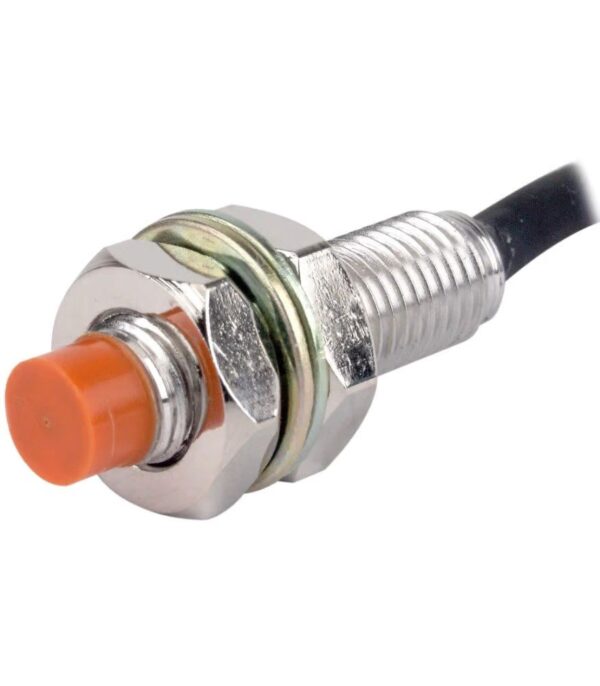 This inductive proximity sensor generates an electromagnetic field to sense metal objects. It features built-in sensitivity volume and provides no-touch object detection. Inductive sensors use a magnetic field to detect objects. Capacitive sensors use an electric field. In order to be sensed by an inductive sensor, an object must be conductive.