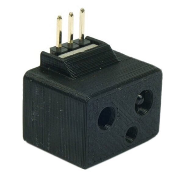 Maker Object is a tiny digital infrared (IR) proximity sensor designed for object/obstacle detection. The IR signal is modulated at 38kHz makes it immune to the ambient light. The Maker Object has NPN output with an internal pull-up resistor. Its output is low when the object is detected. The sensing range is adjustable via the small opening at the front of the sensor. This makes it easily accessible even though the sensor is mounted on the robot.