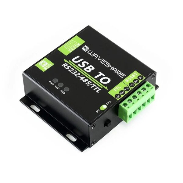 This is an industrial USB to RS232/485/TTL isolated converter from Waveshare with the original FT232RL inside. It features embedded protection circuits such as power isolation, ADI magnetical isolation, and TVS diode, etc. What’s more, the USB TO RS232/485/TTL comes with an aluminium alloy enclosure, make it solid and durable to work.